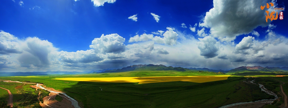 祁连山北麓的扁都口,大片的油菜花夹杂着一块块碧绿色的青稞,高低起伏,绵延无穷,放眼望去,像金黄色的花海,身处此景,仿佛又回到了美丽的春天。