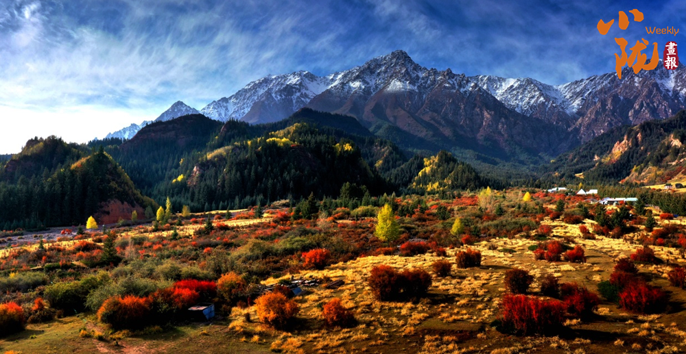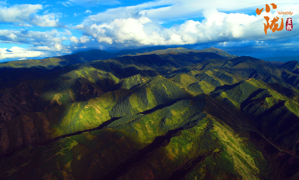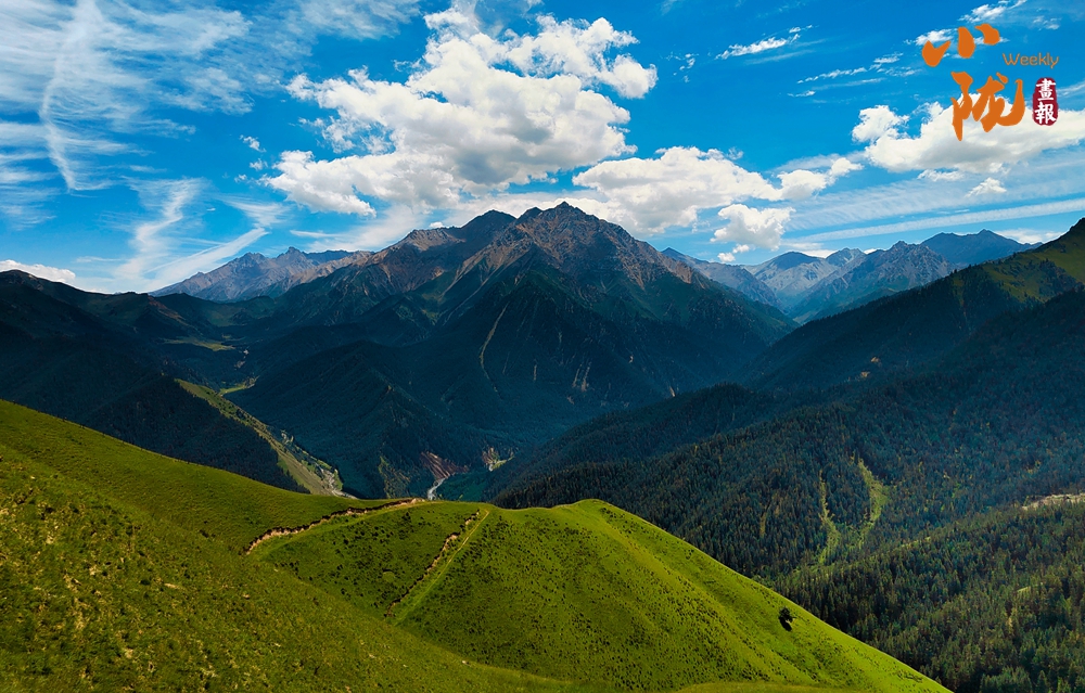 秋日的祁连山肃穆大气,周围群峰层峦叠嶂,被此起彼伏的林海包围,像一道道绿色的波浪。