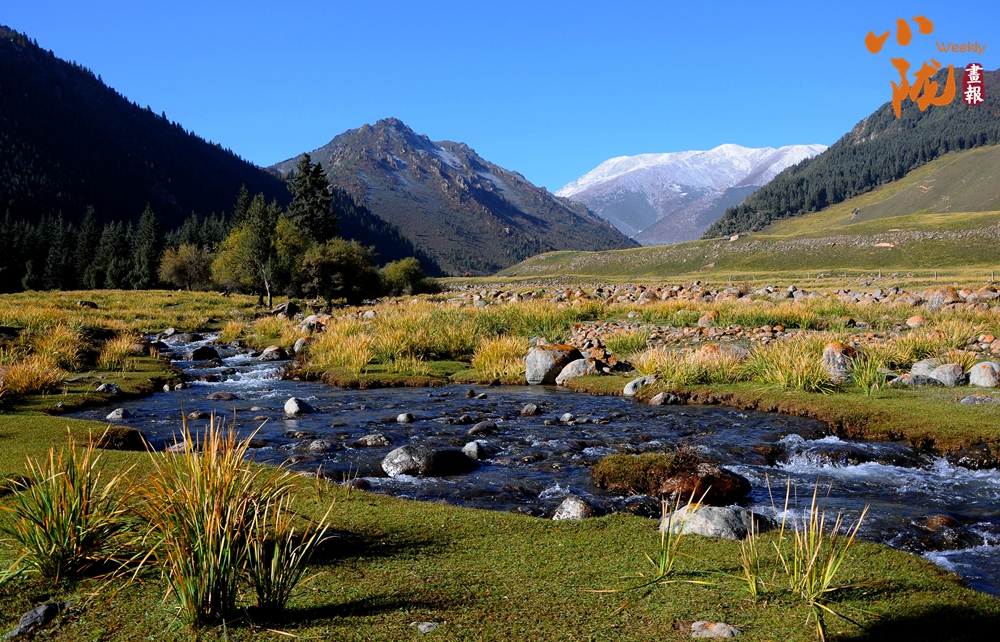 清澈的溪流,带来大自然最纯净的声音。与远处的雪山、草甸、灌木丛和森林交织在一起,形成了丰富的生态景观。