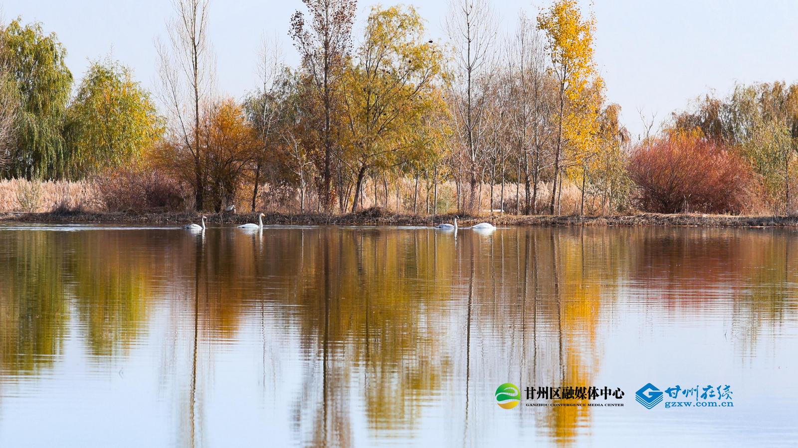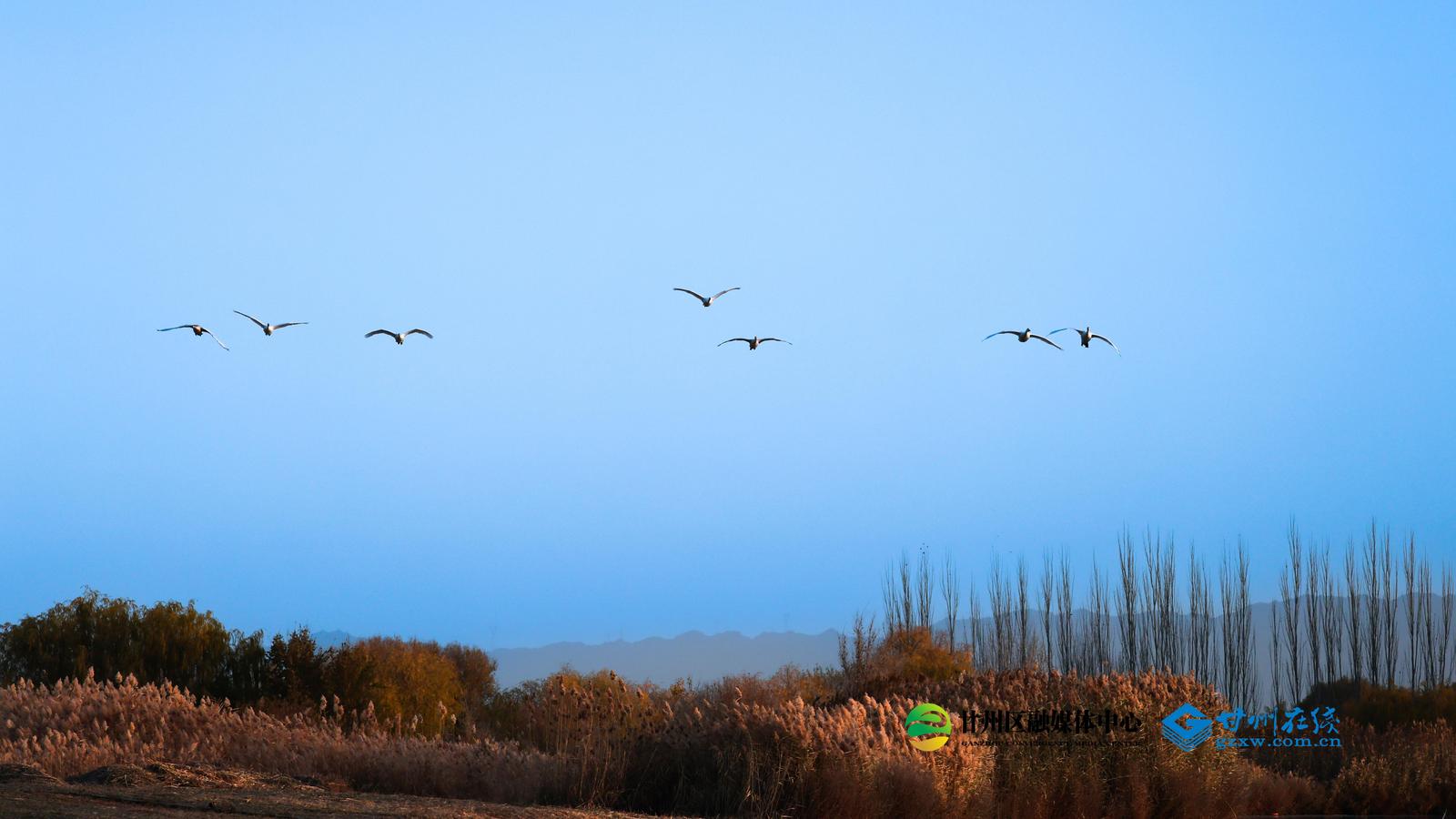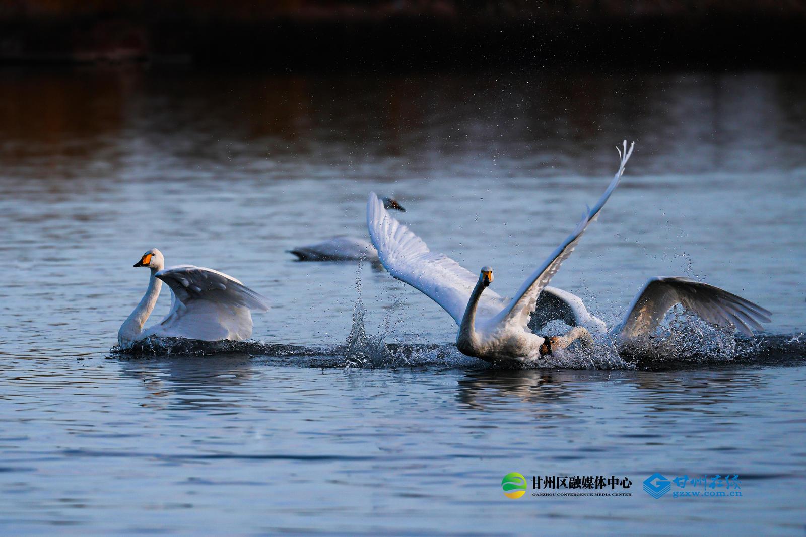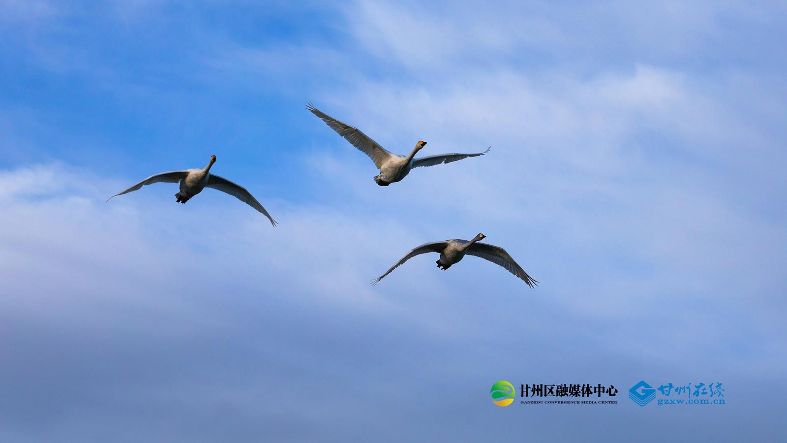 张掖湿地迎来“冬日客” 成群白天鹅翩翩而至