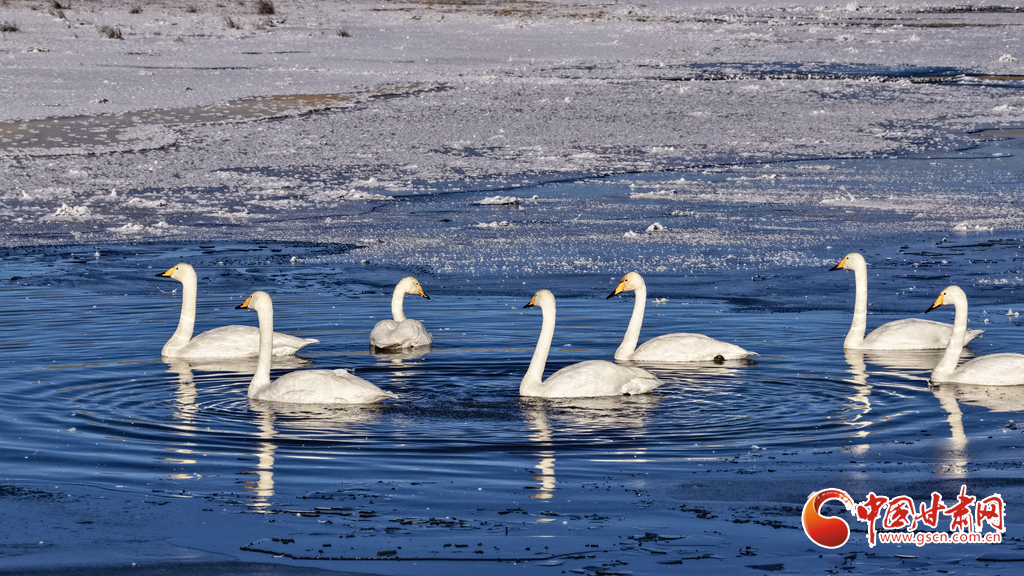 - 2025-11-13张掖湿地迎来“冬日客” 成群白天鹅翩翩而至