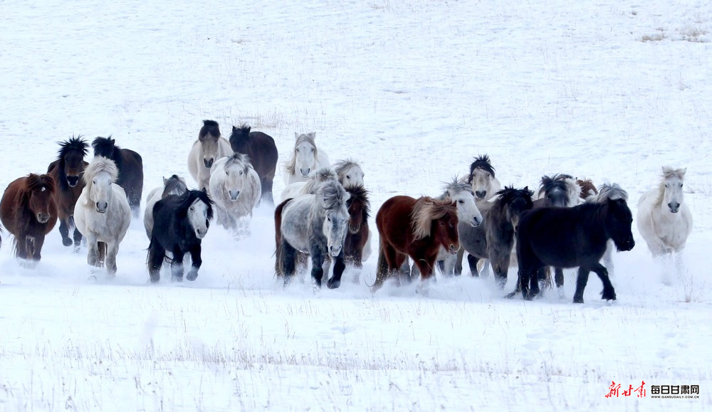 立春时节,张掖市肃南裕固族自治县康乐草原上,连日降雪让大地银装素裹,雪后初晴的草原上响起阵阵马蹄声——康丰村的牧民们催马扬鞭,百匹骏马在茫茫雪原上奋蹄奔腾,鬃毛披银挂霜,踏起的雪花如浪飞溅,织就一道道壮美的“雪幕”,以草原独有的豪情迎接新春佳节。