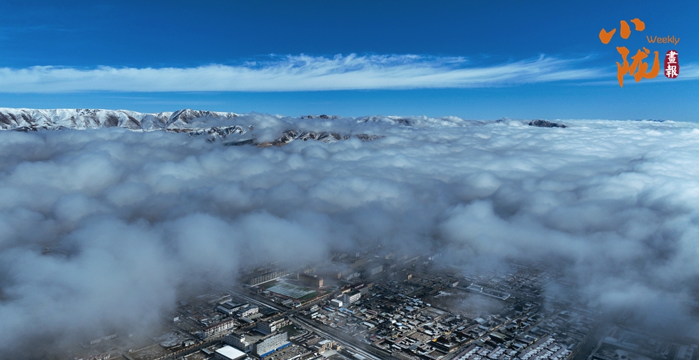从高空俯视,玛曲天地苍茫,云海起伏,雄伟壮阔,广袤无际。