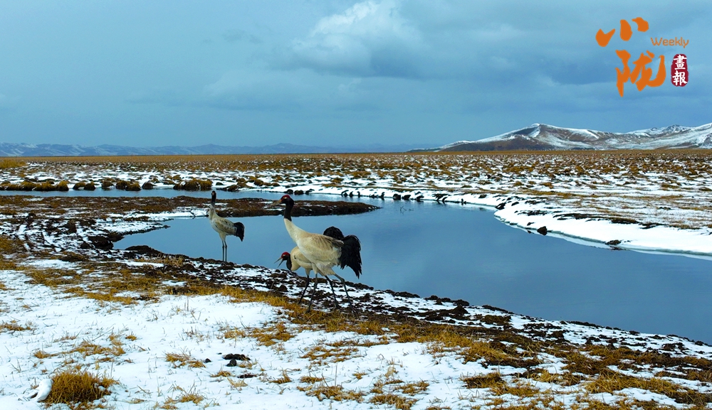 “高原精灵”黑颈鹤身披黑白相间的羽衣,舒展着身体,或低头觅食,它们优雅的身姿成为冬日里一道亮丽的风景线。