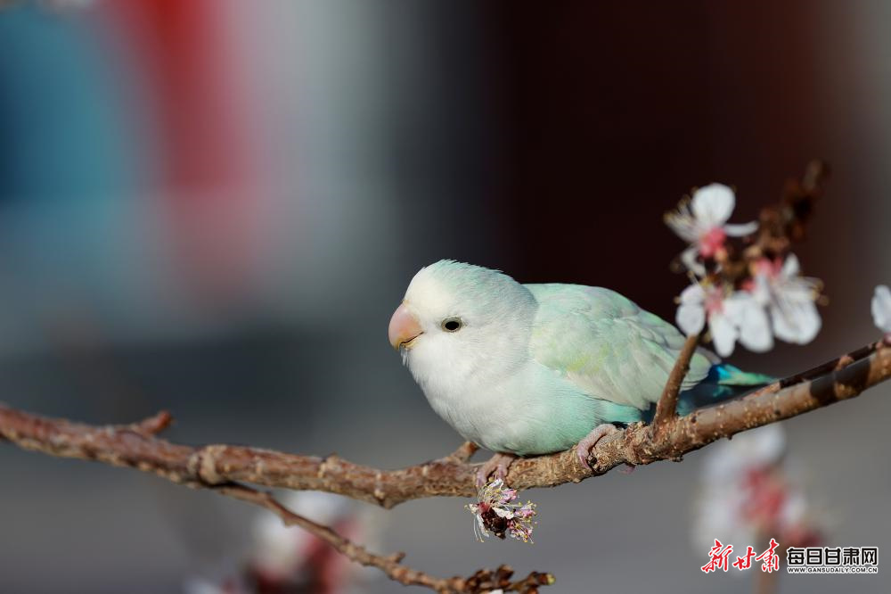 春日暖阳下,酒泉市金塔县金塔镇红光村杏花林迎来“特殊访客”。一只色彩艳丽的鹦鹉翩然飞至杏花枝头,时而轻盈跳跃、穿梭于繁花之间,时而昂首鸣叫、梳理羽毛,灵动活泼的模样与粉白烂漫的杏花相映成趣,勾勒出一幅春意盎然的自然画卷。